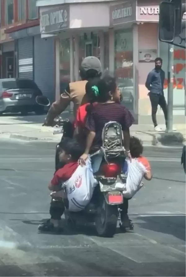 Adana‘nın Yüreğir ilçesi Cumhuriyet Caddesi Karataş Bulvarı’nda 2 kişilik motosiklette yolculuk yapan baba ve 5 çocuğu, kazaya davetiye çıkardı. Önüne bir, arkasına da 2 çocuğunu oturtan baba, 2 küçük çocuğunu da motosikletin sağ ve soluna astığı çuvallarla taşıdı. Vatandaşlar tarafından trafik ışıklarında cep telefonuyla görüntülenen motosiklette, arkadaki kız çocuğunun kardeşleri düşmesin diye çuvalları elleriyle tutarak destek verdiği görüldü. Çevredekilerin uyarılarına aldırış etmeyen sürücü, yoluna devam edip uzaklaştı.